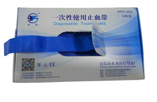 点连式一次性使用止血带,采用热塑性弹性体或橡胶材料制造,非无菌提供一次性使用,适用于静脉输液或抽血时暂时阻断静脉回流。