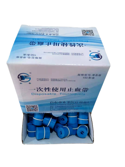 单条卷一次性使用止血带,采用热塑性弹性体或橡胶材料制造,非无菌提供一次性使用,适用于静脉输液或抽血时暂时阻断静脉回流。